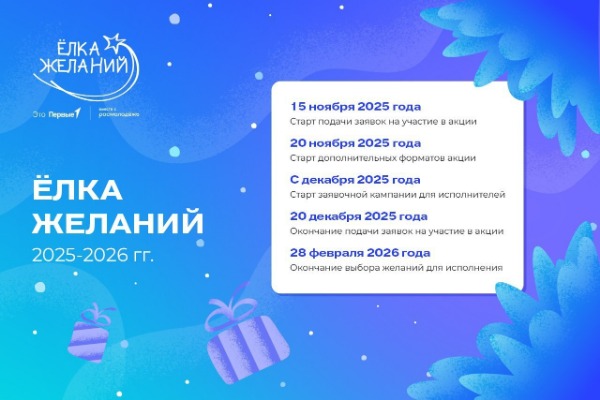 В преддверии празднования Нового года Общероссийское общественно-государственное движение детей и молодежи "Движение первых" при поддержке Федерального агентства по делам молодежи реализует Всероссийскую благотворительную акцию "Елка желаний".